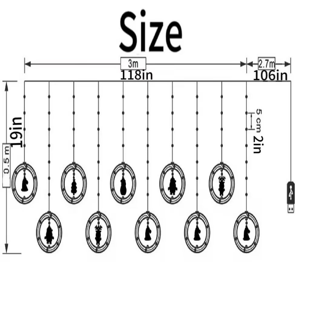 Festive DIY String Lights,Santa Claus Circle Christmas Tree Cartoon Shape Curtain Lights,LED Colorful Lights,Room Window Decoration Lights